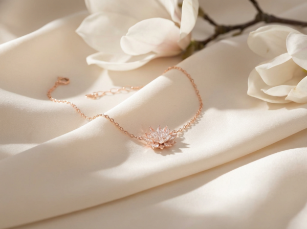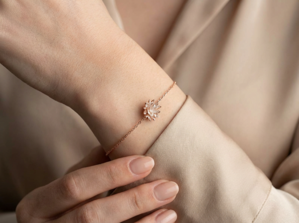 Bracelet délicat en argent sterling 925 avec finition rose gold, orné d’une fleur scintillante sertie de zircons. Sa chaîne fine et ajustable apporte une touche d’élégance et de féminité à chaque tenue.